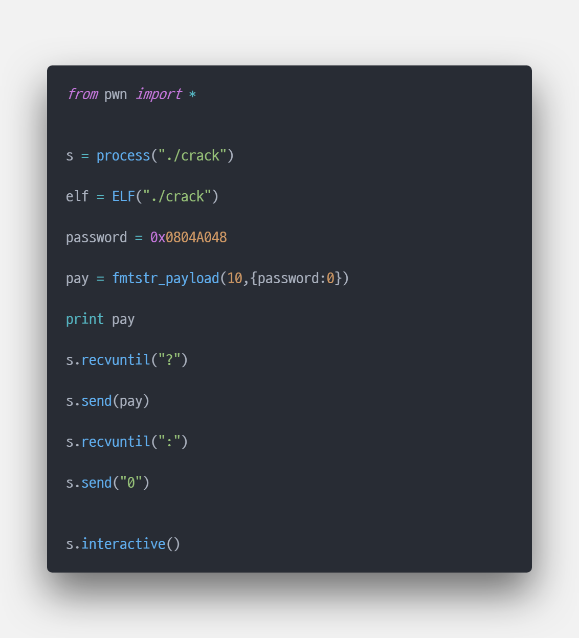 pwntools의 fmtstr_payload를 사용했다. 사용법은 간단하게 fmtstr_payload(offset, {바꾸고싶은주소:값}) 요렇게 사용해주면 된다!!!